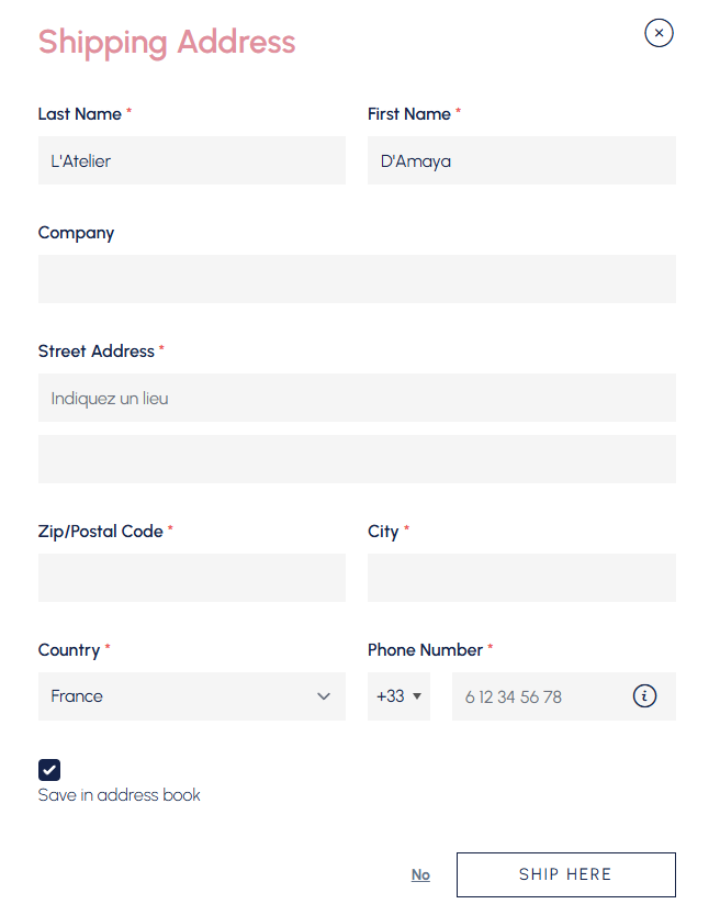 To do so, simply click on “Add an address” after confirming your shopping cart.